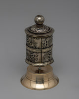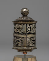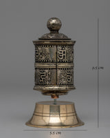 Intricate Tibetan Prayer Wheel for Meditation & Blessings | Compact Copper & Brass Ritual Tool