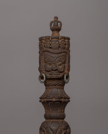 The Iron Buddhist Phurba With Stand, also known as the Vajrakila, is a sacred ritual dagger used in Tibetan Buddhist and Tantric traditions to provide spiritual protection and clean energy and eliminate negativity. This incredible Phurba symbolizes power and sacred force, making it an essential instrument for ceremonies, meditation, and altar decorations.