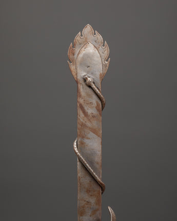 Iron Ritual Sword with Flame Design & Half Vajra | Spiritual Blade