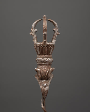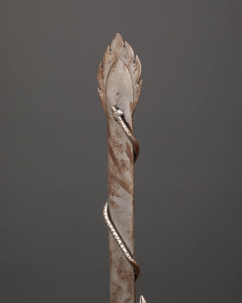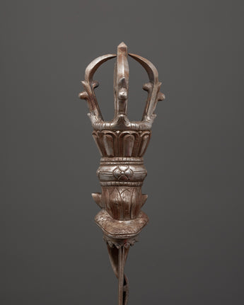 This Iron Ritual Sword with Flame Design and Half Vajra is a stunning handcrafted piece ideal for serious spiritual practices and altar adornment. This mighty sword stands 57 cm tall and 10 cm wide, with a dramatic flame design at the top that represents transformation, wisdom, and heavenly illumination. At its core, a half Vajra—a revered emblem in Tibetan Buddhism—represents unbreakable truth, spiritual strength, and inner clarity. This sword is ideal for individuals seeking a weapon for energy cleansing, protection rituals, or as a striking visual centerpiece in meditation areas.