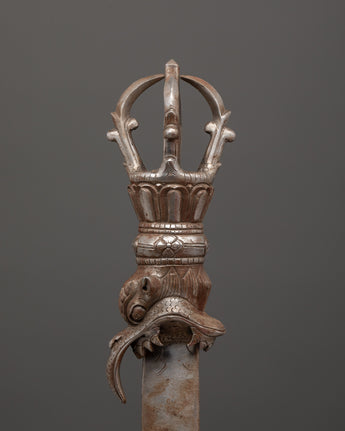 Iron Ritual Sword with Flame Design & Half Vajra | for Altar Decor, Protection