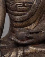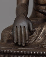 The Iron Shakyamuni Buddha Statue is more than a work of art; it is a powerful emblem of spiritual strength and enlightenment. Standing 28.5 cm tall and made of robust iron, this magnificent statue depicts the Buddha in the Bhumisparsha Mudra, a gesture signifying his victory over temptation and deep connection to the Earth. This hand motion is a potent symbol of the Buddha's enlightenment and capacity to conquer any barrier to spiritual awakening.