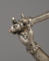 The Jampelyang (Manjushri) Buddhist Statue is a stunning portrayal of the Bodhisattva of Wisdom and Knowledge, created with incredible accuracy and care. Standing 14.5 cm tall and 11 cm wide, this exquisite statue depicts Jampelyang clutching the sword of knowledge in one hand, signifying the abolition of ignorance, and a lotus flower in the other, representing spiritual enlightenment and purity. The tranquil look and fine workmanship on the deity's face communicate inner serenity and concentration, making it an excellent focal point for meditation or spiritual practice.