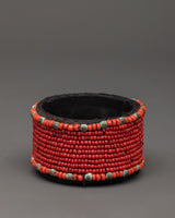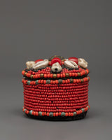 The box, with its deep red and turquoise tones and beaded design, evokes traditional Tibetan beauty and makes an excellent holy altar piece, travel souvenir container, or thoughtful gift. Natural components such as conch and shell accents give this piece a distinct combination of spiritual meaning and artisan craftsmanship, making it ideal for personal or ceremonial usage.