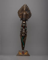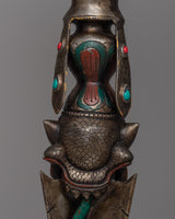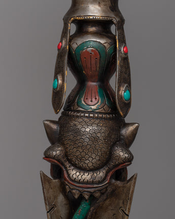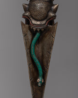 The Iron Kila Dagger, a strong ceremonial implement, exemplifies traditional craftsmanship and spiritual connotation. This sacred dagger, handcrafted with precision on an iron body and embellished with delicate acrylic paint, holds great significance in tantric Buddhist rituals and celebrations.
