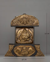 The Buddhist Sculpture of Kubera portrays the lord of wealth and the savior of the north. The blessing of Dzambala and the value of his practice are universal. It assists us in minimizing or reducing all misfortunes and obstacles and growing all good fortune and happiness. Kubera's mission from the gods in Hinduism was to make worshippers wealthy. This gold-gilded Dzambhala statue is excellent for Vajrayana practice.