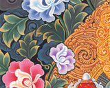 A thangka is a Tibetan painting that is traditionally used as a support for one’s meditation practice. The imagery depicted in Tibetan paintings provides a guide for the elaborate visualisations that one does in Tibetan Buddhist practice. In Tibetan homes and monasteries, thangkas are considered sacred objects and are often placed above shrines.