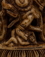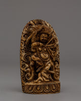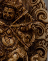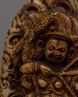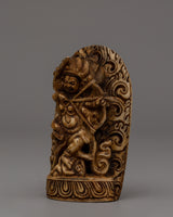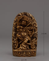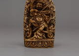 Unleash Kurukulla's transformational force with this Handmade Kurukulla Yogini Statue, which is expertly created from ethically sourced buffalo bone. This finely carved artwork, measuring 7.5cm tall and 4.5cm wide, depicts the ferocious yet sympathetic Kurukulla, a tantric goddess of empowerment, magnetism, and change. Her forceful expression and meticulous stance demonstrate the artist's skill and commitment, making this statue a powerful symbol of spiritual and creative greatness.