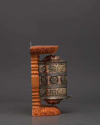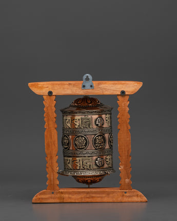 Large Copper & Brass Prayer Wheel | Sacred Wood Frame