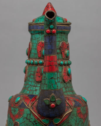Large Tea Pot | Buddhist Pot with the Gemstones Embedded