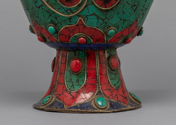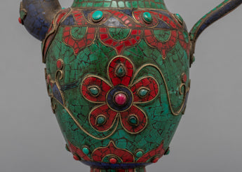 This Large Tea Pot is both a work of art and a functional piece of art. It is made of copper and is extremely durable and long-lasting. The gemstones embedded in the design give the piece a touch of elegance and sophistication. The teapot is not only useful for making tea, but it is also a decorative item that can be displayed with pride. The craftsmanship that went into making this teapot makes it a one-of-a-kind addition to any collection.