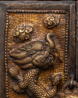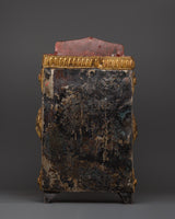 This Ghau box, traditionally used to keep relics, scriptures, or ritual implements, is both a spiritual tool and a stunning example of Himalayan craftsmanship. The ornate dragon motif on a smooth metallic surface represents the protective forces of mythological beings who protect sacred knowledge. Whether in a home shrine, yoga studio, or meditation room, this shrine cabinet has a practical purpose and profound spiritual value, making it ideal for any serious practitioner or collector of Buddhist art.