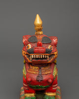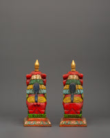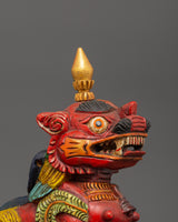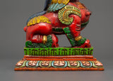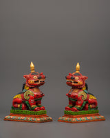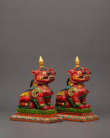 Handcrafted Wooden Buddhist Guardians Tibetan Snow Lion Statue Set