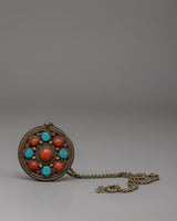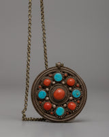 Adorn yourself with this exquisite Handmade Silver Locket Chain, which flawlessly combines classic workmanship with spiritual meaning. This 37cm chain is made of 90% silver and 10% copper for durability and brightness, and it is embellished with brilliant blue and coral stones. The turquoise represents healing and protection, while the coral provides grounding and balancing energy, making this locket chain both important and fashionable.