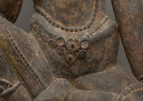 The handcarved wooden Lokeshwor statue is a stunning portrayal of one of Buddhism's most respected deities. This 91cm tall and 50cm broad statue represents Lokeshwor, the Buddhist guardian protector. Lokeshwor, known for his serene and loving appearance, is revered as the "lord of the world," providing direction and protection to all beings. With its placid posture and carefully crafted features, this statue brings peace and holy energy into any space.