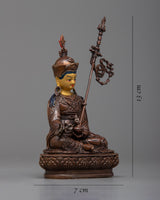 Introducing our machine-made Guru Padmasambhava Statue, a divine representation of wisdom and enlightenment. This statue, meticulously crafted on a copper body and embellished with a 24k gold electro gilded face, captures Guru Padmasambhava's enlightened presence in exquisite detail. Standing at 13cm tall, each part of the statue is precisely detailed, embodying the divine characteristics of wisdom and spiritual guidance.