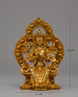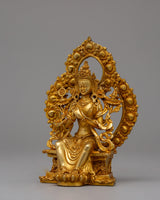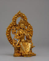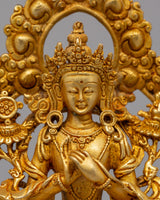 Maitreya, representing the Buddha of the Future, embodies compassion, wisdom, and boundless love. The throne's intricate design and delicate hand gestures are reminiscent of traditional Buddhist artistry, emphasizing peace and enlightenment. Crafted by skilled artisans, this gold-plated copper statue is a timeless spiritual artifact ideal for deepening your meditation practice or giving to loved ones who appreciate Buddhist symbolism.