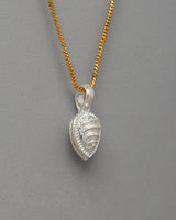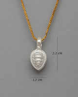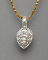 This silver mala counter clip, intended for Buddhist practitioners, is beautifully detailed and locket-like in shape. It measures 2.2 cm in height and 1.2 cm in width and is delicately crafted from silver, highlighting its minimalist yet elegant design. The clip's surface is adorned with mandala-like intricate patterns and fine details, including circular patterns and delicate engraving, giving it a refined, sophisticated appearance.