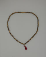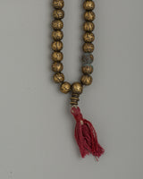 A bright red tassel at the bottom of the mala adds color and meaning. It frequently indicates the end of a cycle or a spiritual connection. The red tassel is both a beautiful element and a symbol of the spiritual journey. With its simple yet significant design, this mala provides both function and beauty to individuals looking to enhance their connection to their practice or carry their spiritual instruments with them. The iron material guarantees that it is both heavy and durable, making it an ideal tool for everyday spiritual practice.