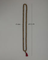 Mala is a traditional prayer bead necklace intended for spiritual practice. This mala is made of iron in each bead, which measures 8mm in diameter. The beads are carefully placed into a 46.5 cm long strand, which is ideal for usage during meditation or chanting. Its simplicity and elegance make it a perfect addition to any spiritual practice, allowing you to focus on mantras, prayers, or mindfulness.