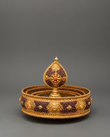 The Gold Mandala Offering Set is a practical way to show respect and dedication and is perfect for ceremonial use, meditation techniques, or as a decorative centerpiece. With this gorgeous set by your side, embrace the mandala's profound symbolism and transformative power as you begin a journey of spiritual enlightenment and self-discovery.