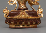 This meticulously carved Buddhist deity statue is detailed and creatively accurate. The gold-plated accents represent divine illumination, while the corroded copper body adds to its vintage appeal. Placing this Manjushri statue in your meditation place, altar, or study area is thought to improve intellectual clarity, remove impediments to wisdom, and promote profound spiritual understanding. It is a fantastic spiritual Present for students, researchers, and Buddhist practitioners.
