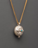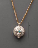 This locket, which is adorned with a genuine turquoise stone, has a traditional Vajra (Dorje) sign that stands for power, protection, and enlightenment. Meaningful relics can be placed inside the Ghau box, which has a screw mechanism that allows it to be opened and closed securely. This Buddhist amulet, worn near the heart, is thought to bring inner serenity, protection against negativity, and spiritual direction. This gorgeous silver pendant reflects Himalayan craftsmanship and spiritual commitment and is perfect for meditation, personal rituals, or as a meaningful present.