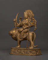 Mighty Goddess Durga Brass Statue | Hindu Deity on Lion