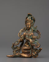 Naga Kanya Buddhist Sculpture of Serpent Goddess | Copper with Antique Finishing