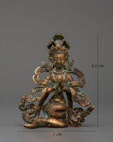 The Naga Kanya statue measures 8.5 cm high, 7 cm wide, and weighs 0.14 kg. Made from high-quality copper with an antique finish, this statue depicts the Serpent Goddess in an elegant and powerful pose. Naga Kanya is honored in Buddhist and Hindu traditions, symbolizing protection, knowledge, and the harmonious balance of the elements. The intricate craftsmanship, especially in the coiled serpent, emphasizes the goddess's role in safeguarding sacred sites and offering spiritual protection.