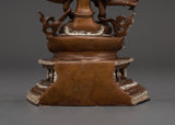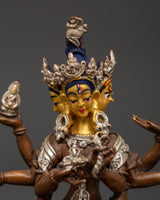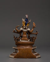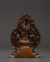 Namgyalma is revered for her ability to protect against negative forces and promote longevity, spiritual health, and wisdom. The silver plating enhances the statue’s divine presence, symbolizing purity and spiritual enlightenment. The oxidized copper body adds a grounded, earthy energy to the figure, representing the connection between the material and spiritual worlds.