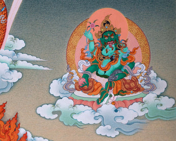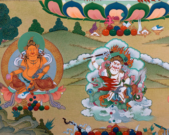 All the attributes and emblem are done according to Buddhist text and iconography. We take delight to share our Namtoshe Jambala thangka with you all.