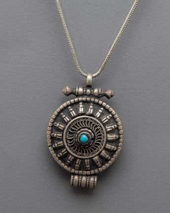 A Buddhist locket is a piece of jewelry designed to hold a small prayer, mantra, or image related to Buddhist practice. The locket may have a design or image of a Buddhist deity, such as the Buddha, or an image of a sacred symbol, such as the lotus flower. It is typically worn as a talisman to remind the wearer of their spiritual path and to offer protection. Some Buddhist lockets are also used as a form of religious devotion and are frequently given as gifts to friends and family members to provide them with spiritual support and blessings.