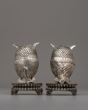 With their exquisite craftsmanship in copper and silver plating, this collection of owl statues will add a touch of enchantment to your garden haven. These beautiful items serve as emblems of grace, wisdom, and the beauty of nature in addition to being ornaments. Whether arranged as the focal point of your outdoor table or placed in among your interior furnishings, these statues lend a sense of refinement and allure to any area.