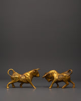 Handcrafted Brass Ox Statue Set | Pair of Decorative Sacred Oxen Sculptures