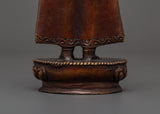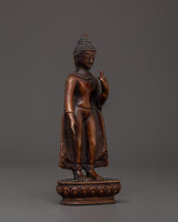 This figure, crafted from copper and carefully positioned on a lotus pedestal, exemplifies traditional Nepalese craftsmanship. The darker copper finish lends a traditional feel while emphasizing every detail of Dipankara's peaceful look and symbolic hand gestures. This sculpture is ideal for both practitioners and collectors, representing tranquility, vision, and spiritual awakening. Its small size makes it suitable for personal altars or as a thoughtful gift for spiritual seekers.