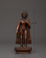 Bring the stunning force of enlightenment into your sacred area with this handcrafted Oxidized Copper Dipankara Buddha statue. Dipankara, considered one of the oldest Buddhas in the Buddhist tradition, represents infinite light and wisdom and is said to have predicted the enlightenment of Shakyamuni Buddha. This 14.5cm statue is ideal for meditation rooms, shrines, or as a spiritual focal point in your house.