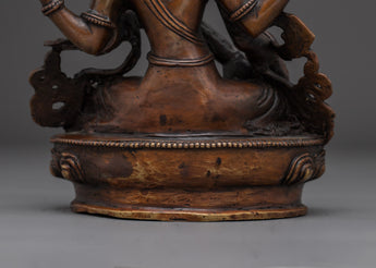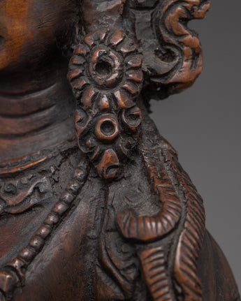This Handmade Oxidized Copper Saraswati with Veena Statue stands 8.7” (22 cm) in height and 6.3” (16 cm) at the base, weighing 2.01 kg. Crafted from an oxidized copper body with an antique finish, the statue radiates a timeless aesthetic. Depicting Saraswati, the Hindu goddess of wisdom, music, and learning, as she gracefully holds her veena, this piece is ideal for enhancing study spaces, altars, or spiritual corners with refined energy and traditional artistry.