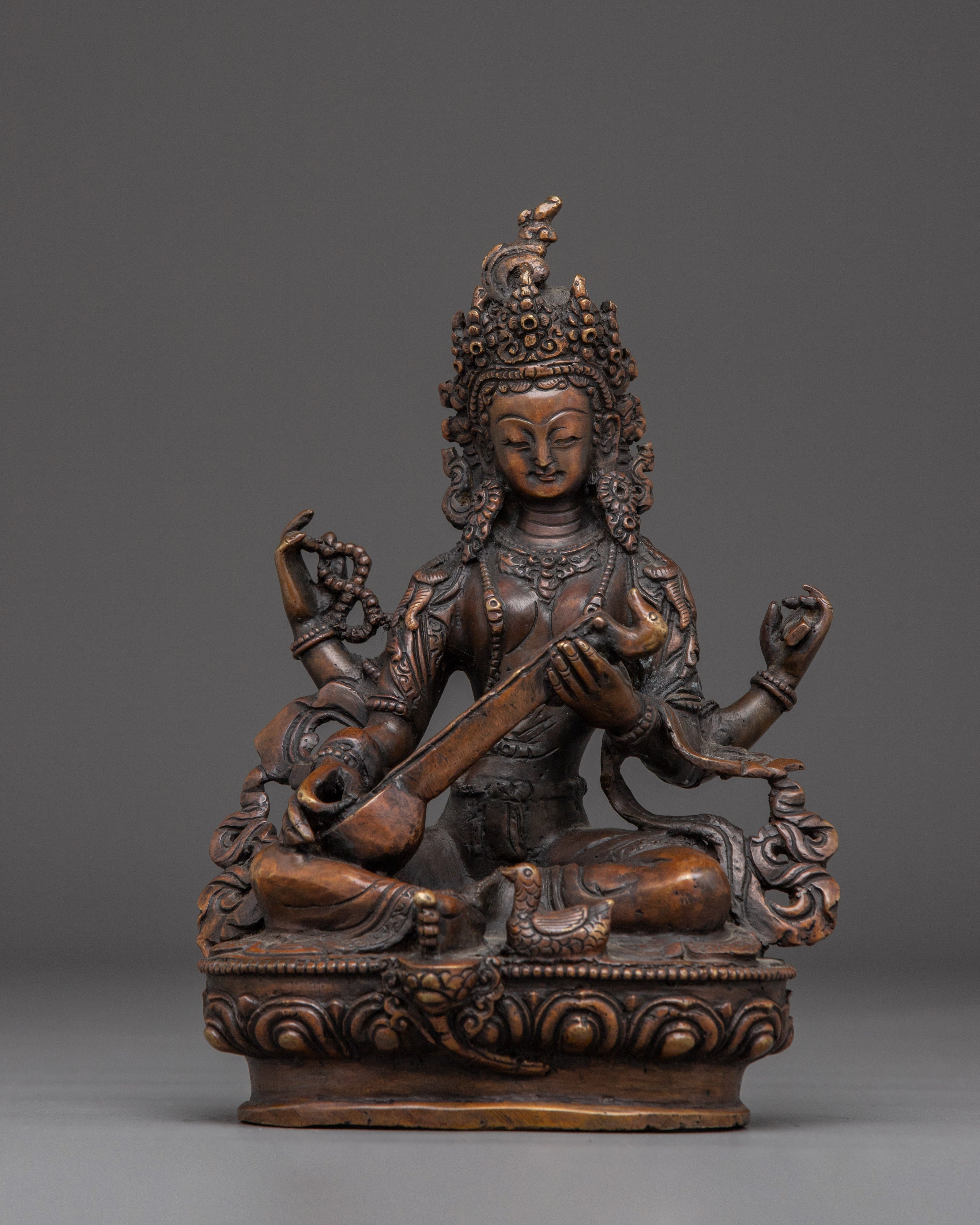 Oxidized Copper Saraswati with Veena Statue | Symbol of Wisdom and Knowledge