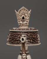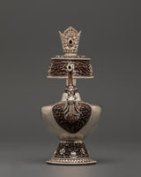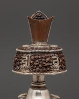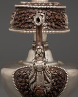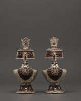 These larger, exquisitely crafted Bhumbas are ornamental and practical accent pieces. Combining dim textures and polished silver tones creates a sense of harmony and respect. This set improves spiritual focus and draws positive energy into your surroundings, whether you're creating religious ceremonies or decorating your meditation area.