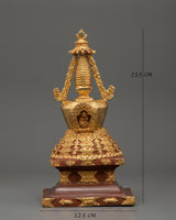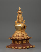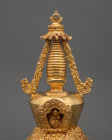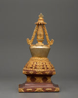 Oxidized Gold-Plated Stupa for Buddhist Shrine