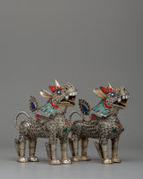 Handcrafted Pair of Lion Statues | Protection Symbols for Home and Office Spaces