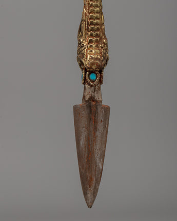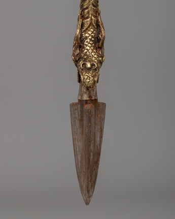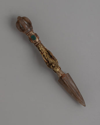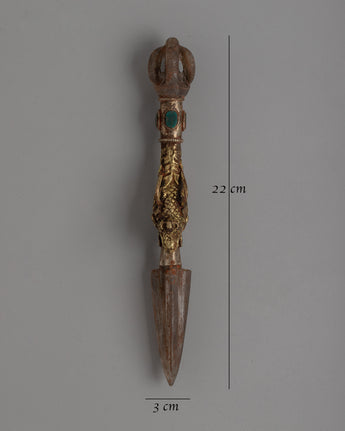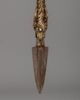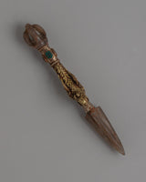 This Phurba is a potent and significant item for practitioners and collectors alike. Because of its unique combination of traditional artistic expression and symbolic meaning may serve as a focal point for both ornamental and spiritual reasons. Allow this beautiful ceremonial dagger to infuse your holy area with harmony, defense, and spiritual kinship.