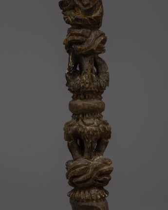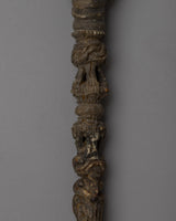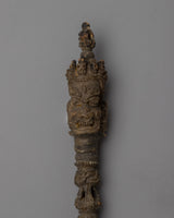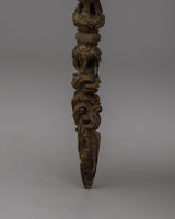 Perfect for collectors, spiritual seekers, and art lovers, the Phurba Dorje is an unique decorative item in addition to a potent ceremonial instrument. Its spiritual symbolism and aesthetic beauty enhance any atmosphere as it promotes reflection and devotion. This phurba is a treasured addition to any collection or sacred space since it is more than just a beautiful piece; it is a significant artifact that represents fine craftsmanship and profound spiritual beliefs.