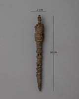 Presenting the Phurba Dorje, a fantastic example of traditional craftsmanship and spiritual artistry. This phurba, which weighs 0.020 kg and is 16 cm tall and 2 cm wide, was carved by hand from ethically sourced buffalo bone. This ritual dagger, which is used in Tibetan Buddhism to drive out barriers and lousy energy, has a rich cultural history and profound spiritual meaning that is reflected in its exquisite details and design.