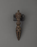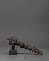 The Phurba with Stand is a sacred Tibetan Buddhist ritual dagger used for meditation, spiritual rites, and energy purification. Traditionally connected with Vajrakilaya, the deity of transformation and barrier removal, this 7cm tall and 18cm wide Phurba is a must-have for practitioners seeking spiritual protection, grounding, and focus.