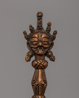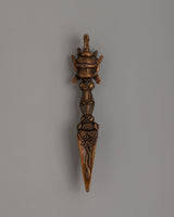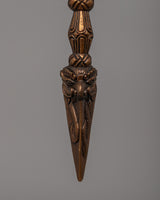 The Powerful Tool Tibetan Phurba, or the Vajrakila, is a sacred Buddhist ritual dagger used for spiritual protection and energy purification. This handcrafted Phurba is made of pure copper, with detailed details of wrathful deities representing the breakdown of opposing forces and barriers.