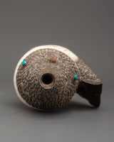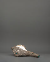 This conch shell was expertly carved and silver-plated, giving it a brilliant and mystical aspect. Weighing 1.248kg, it has a strong yet balanced feel, making it suitable for prayer rituals, temple use, and as a sign of divine protection. Whether used in spiritual ceremonies, on home altars, or as a one-of-a-kind Buddhist gift, this Tibetan conch shell represents purity, knowledge, and enlightenment.