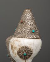 Religious Conch Shell | 35cm Silver-Plated Tibetan Shankha