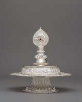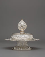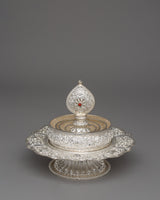 Handcrafted Silver Ritual Item Mandala Offering Set | 17.5cm Rice Offering Set